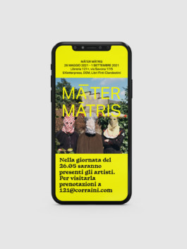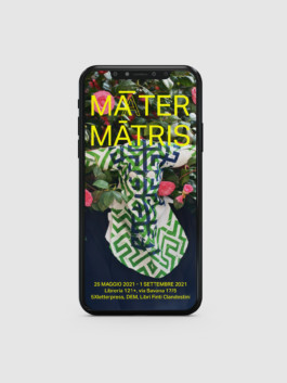 For the exhibition "Māter Mātris," at Ex-temporaneous Bookstore 121+, a logo was created that became the main element of the event's communication. In this, the repetition of the letter A is meant to recall the concept of matrix, which is fundamental to the collective of the three artists gathered in the exhibition.